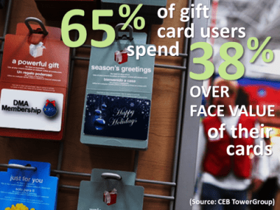 In fact, it’s so common, that “shoppers typically spend 38% over the face value of their Gift Card,” reports Retail TouchPoints.