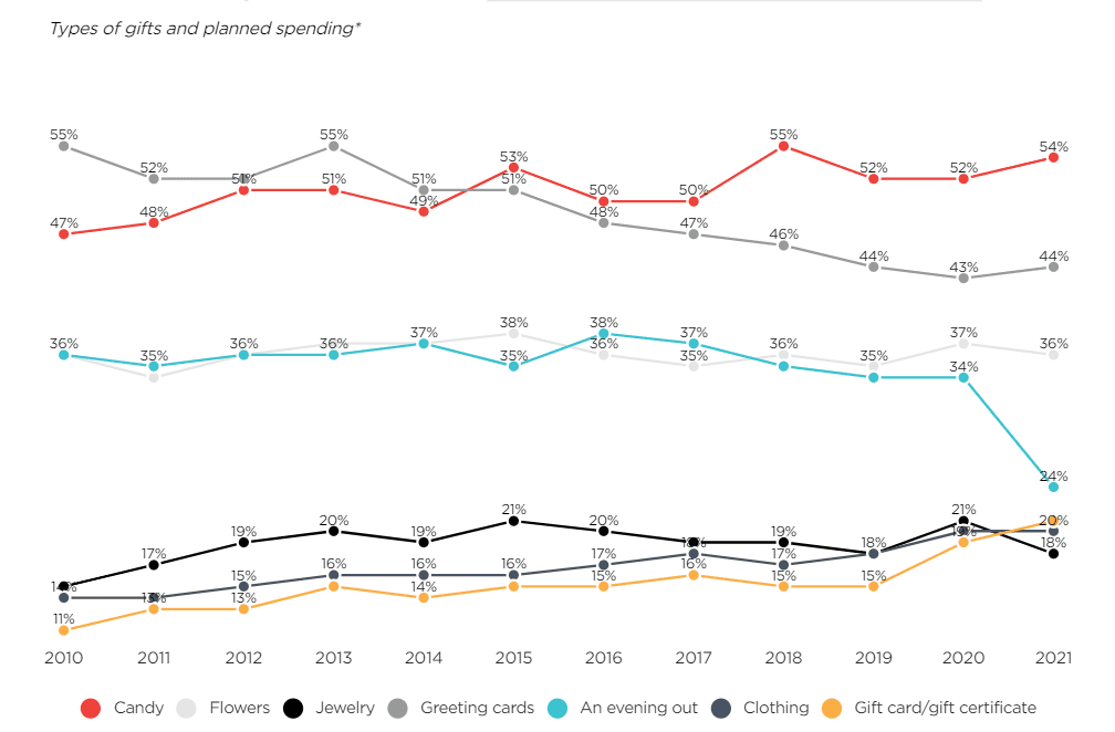 In 2021 theΒ most purchased items on Valentineβs DayΒ are the traditional: