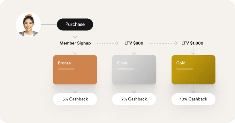 For example, you can give members $5 cashback for every $50 they spend. The more they spend, the more they earn.