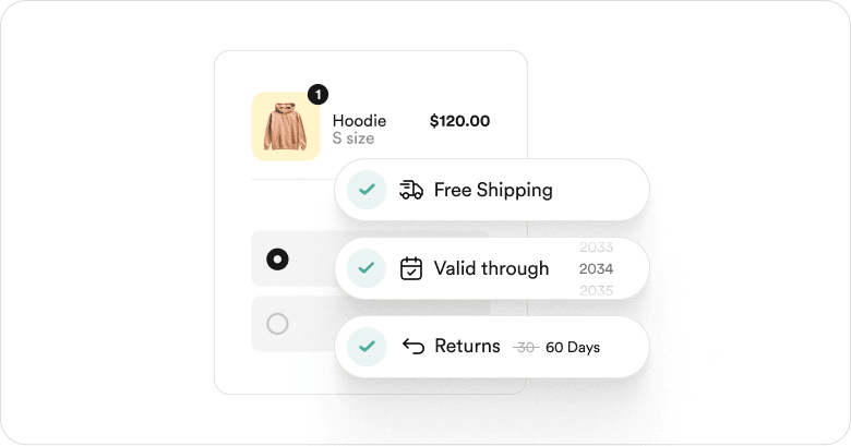 Rather than viewing free shipping and returns as a customer acquisition cost, make it a membership perk. With Rise.ai, you can let members enjoy free shipping by default, extended return periods, and increased refunds for opting in to Store Credit over cash (with flexible credit expiration options).