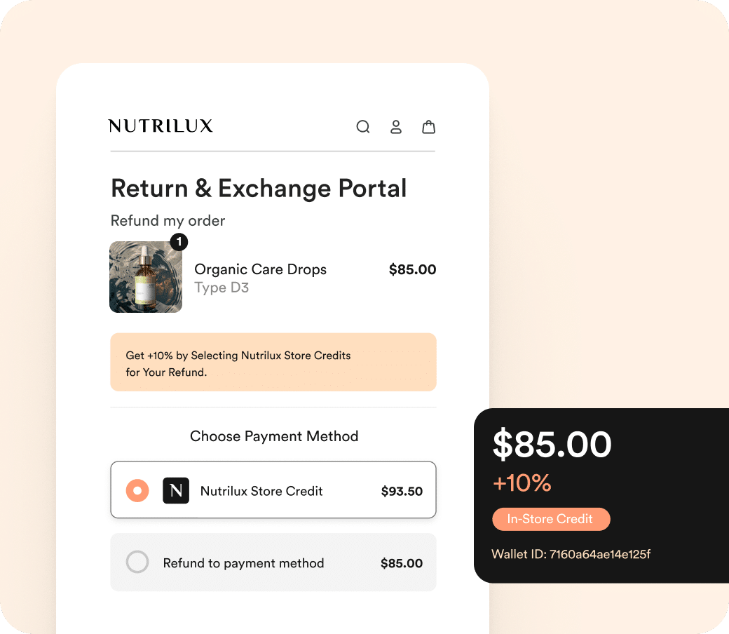 Offer your customers store credit refunds, which promote repeat purchases and long-term loyalty. Boost retention and satisfaction, turning returns into an opportunity for future sales.