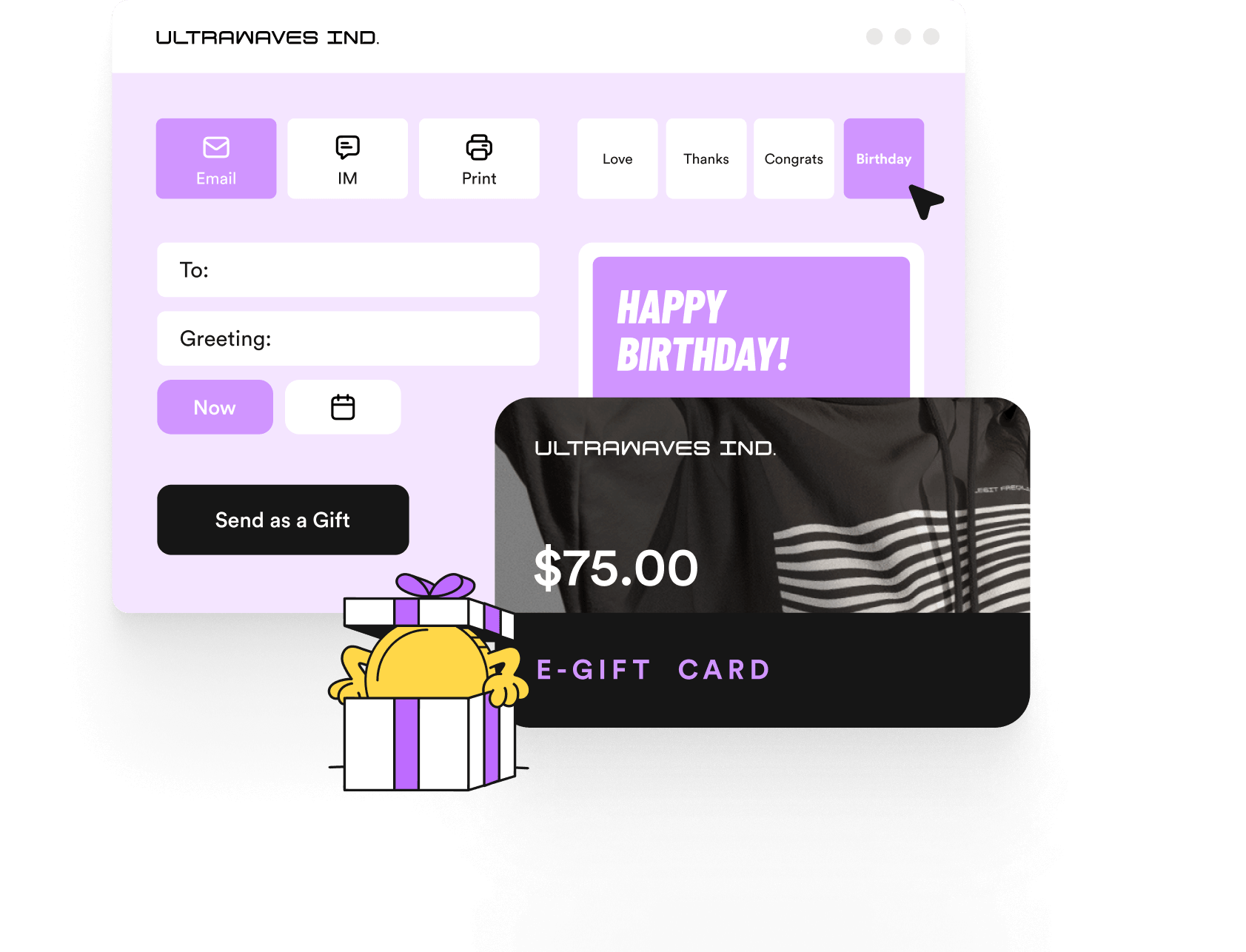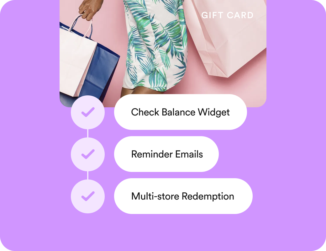Drive high redemption rates with our tailored reminder flow. Unleash the power of total gifting customization, from personalized emails to multi-store redemptions and immediate balance checks.